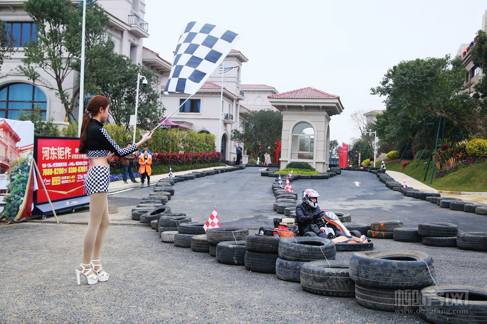 碧桂园炫酷机车美女 体验极速卡丁车